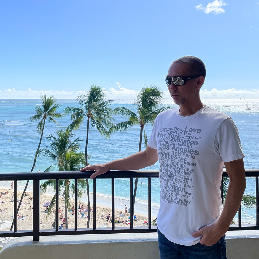 006 Vocab Crew-neck DRY Tshirt Pink Graphic Navy T
