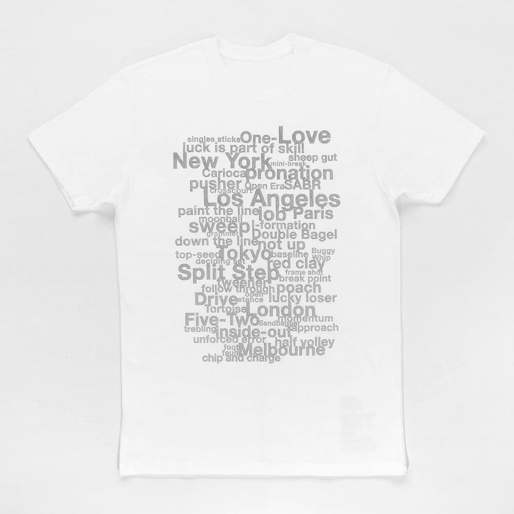テニスをしているとごく当たり前のテニス用語と気がつくけれど、していないとよく判らない言葉だらけ。そんなギャップを面白く捉えた暗号的グラフィックです。